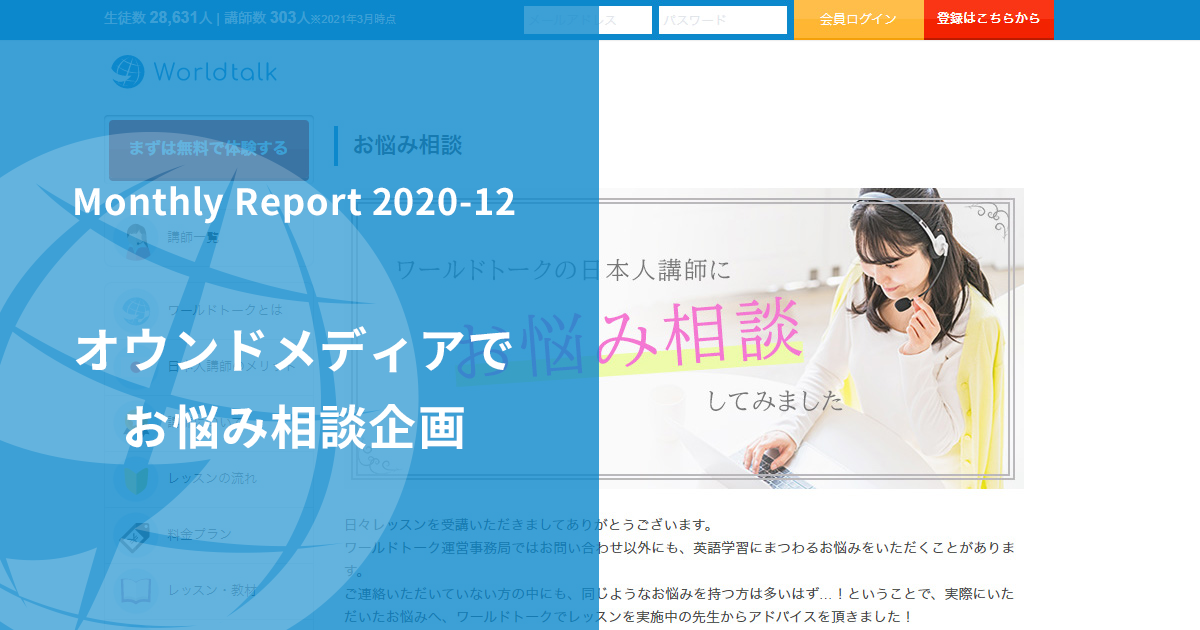 2020年12月のワールドトークマンスリーレポートです