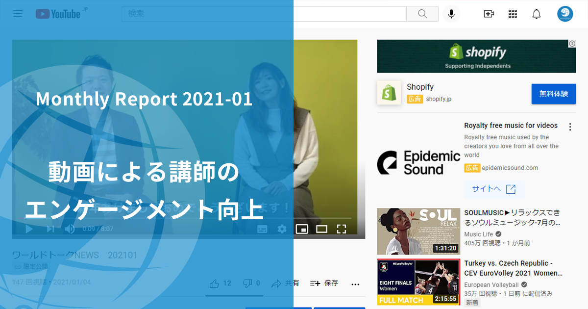 動画による講師エンゲージメント向上(2021年1月ワールドトークマンスリーレポート)