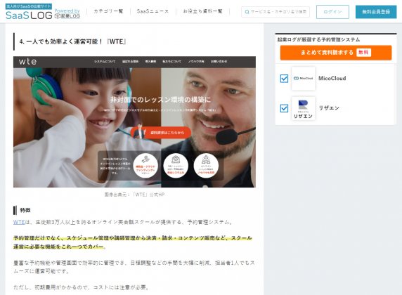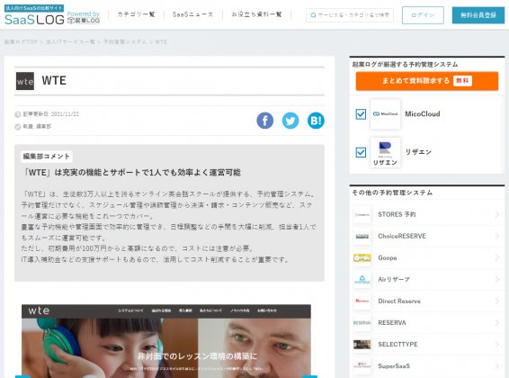 「起業LOG」さんの「徹底比較おすすめ予約管理システム」で、WTEを紹介いただきました!