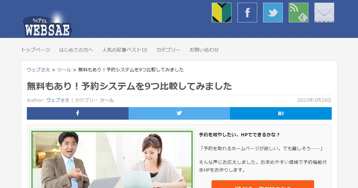 「ウェブさえ」さんの「無料もあり!予約システムを9つ比較してみました」で、WTEを紹介いただきました!