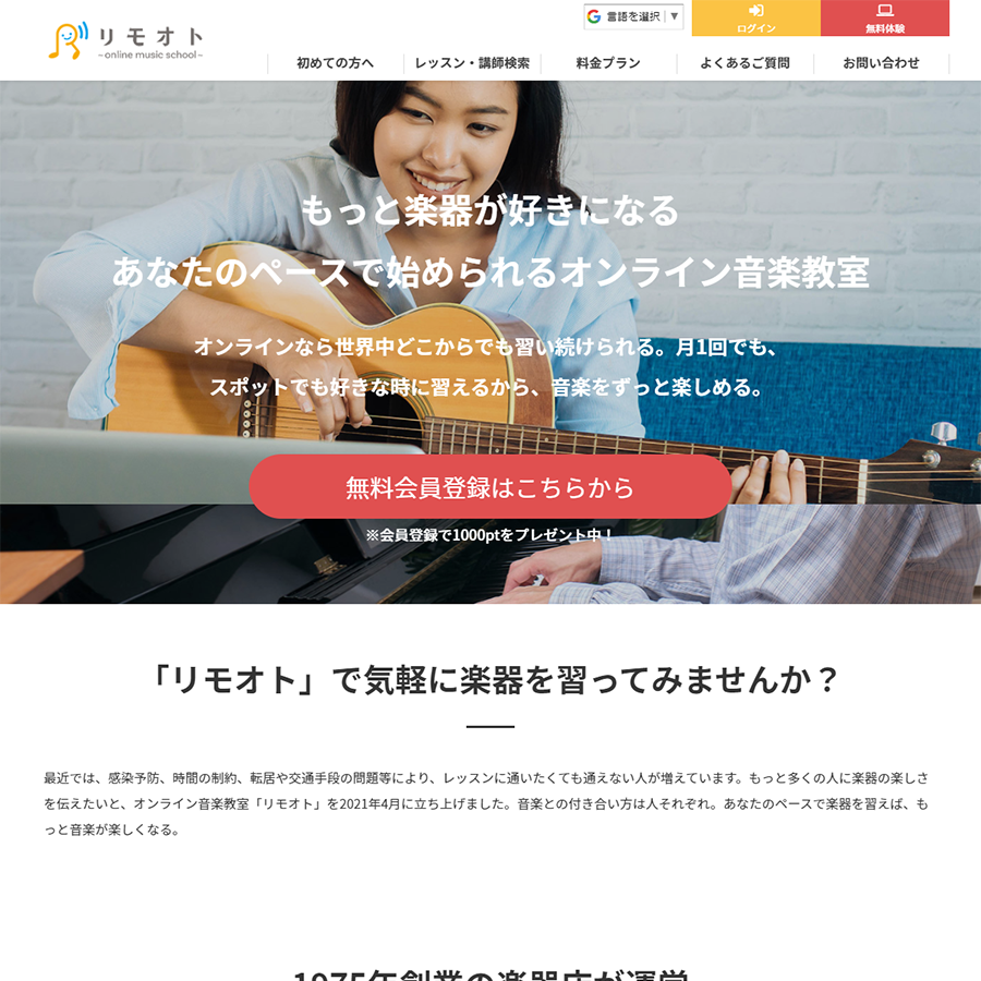 「リモオト~online music school~」は、1975年創業のオリエント楽器様が2021年4月に開始するオンライン音楽スクールです。